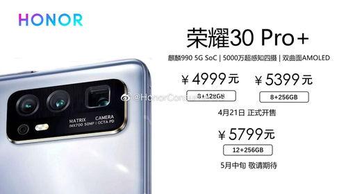 关于荣耀30 Pro的价格和上市时间,目前还没有确切的消息。不过,根据以往的经验,荣耀手机的价格一直比较亲民,相信荣耀30 Pro也不会让人失望。至于上市时间,预计会在今年第三季度与大家见面。